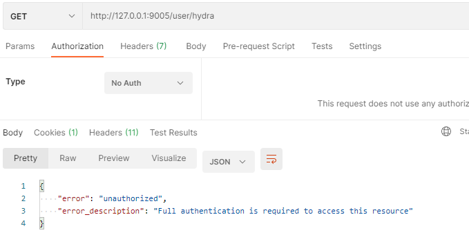 不携带access_token,直接访问接口http://127.0.0.1:9005/user/hydra:
